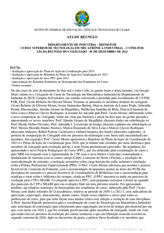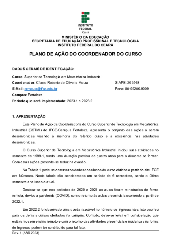Plano de Ação 2023 - Coordenação Tecnologia Mecatrônica Industrial