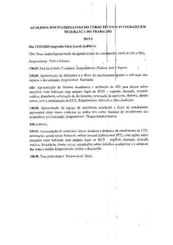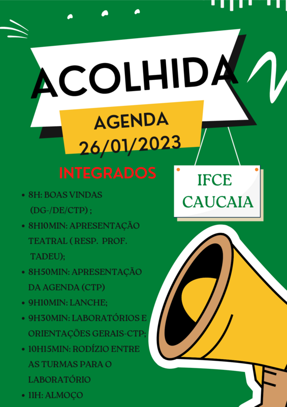 Atuar no planejamento e execução do evento de acolhida dos estudantes ingressantes nos cursos ofertados pelo campus- Semestre letivo 2023.1