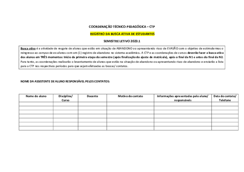 Executar busca ativa de estudantes em situação de abandono ou com risco de abandono por reprovação por faltas – Semestre letivo 2023.1