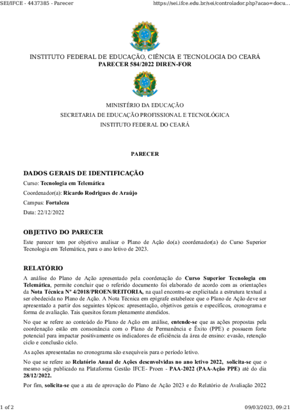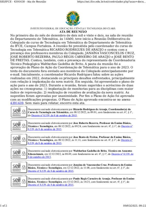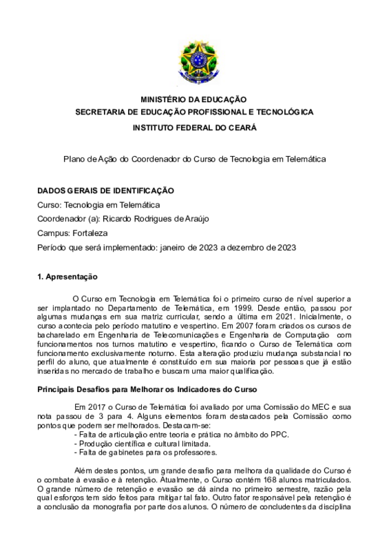 Plano de Ação da Coordenadoria do Curso de Tecnologia em Telemática para o ano de 2023