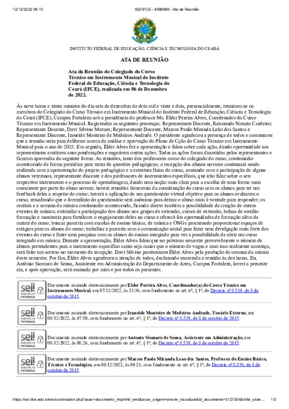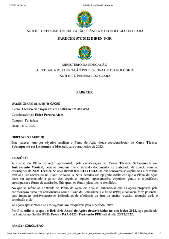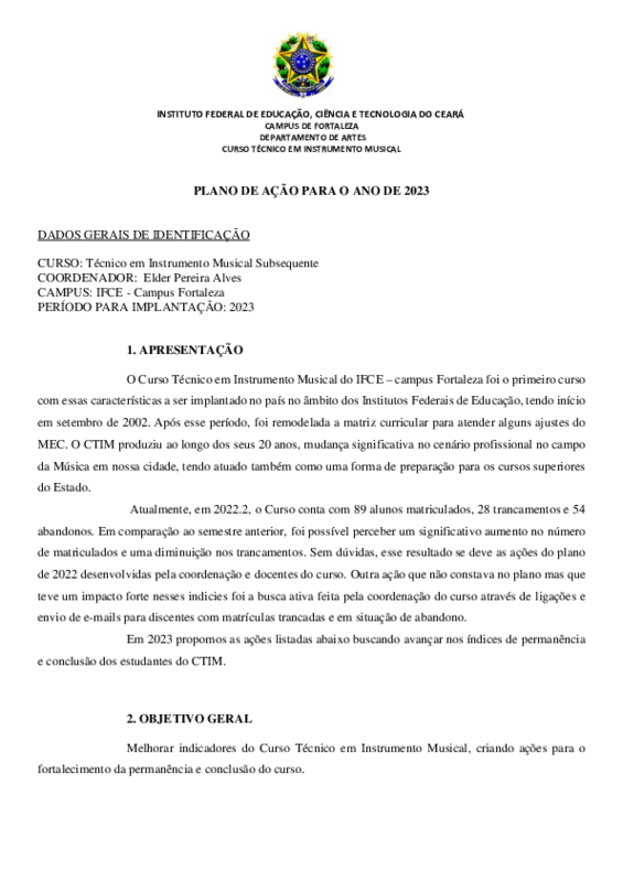 Plano de Ação 2023 - Curso Técnico em Instrumento Musical