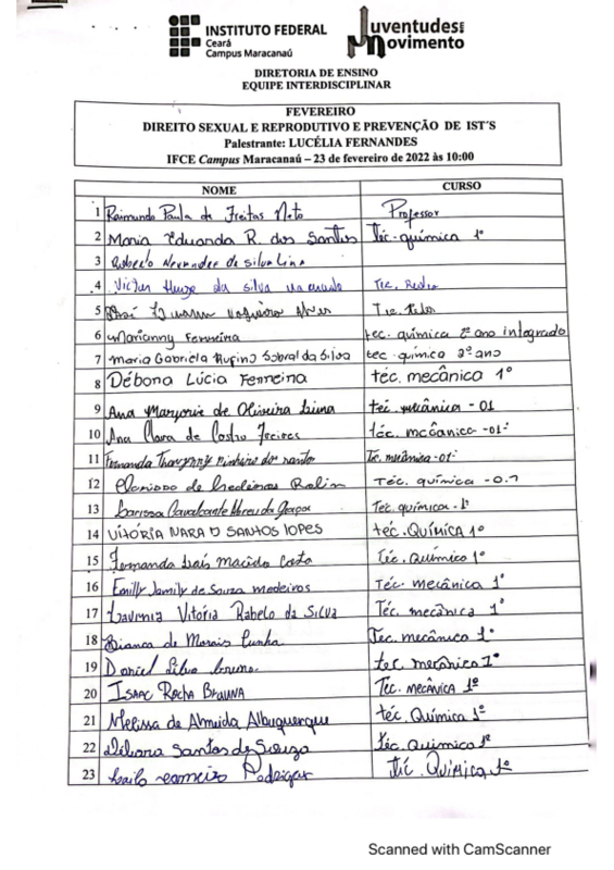 - Arquivo Frequência Palestra Direito Sexual e Reprodutivo e prevenção de ist´s.pdf Frequência Palestra Direito Sexual e Reprodutivo e prevenção de ist´s.pdf adicionado