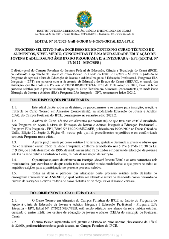 - Arquivo Edital nº 31.2023 - Técnico em Alimentos - EJA.pdf Edital nº 31.2023 - Técnico em Alimentos - EJA.pdf adicionado