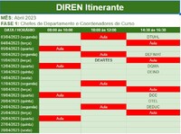 O Projeto Diren Itinerante, visa realizar visita e discussão em cada Departamento de área, primeiramente com a Gestão e em sequência com os professores, afim de conhecer as necessidades e dificuldades de cada curso.