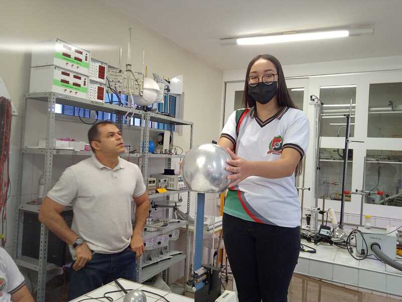 Visita da Escola de Ensino Médio Flávio Ribeiro Lima, de Ubajara, com 35 alunos do 2° e 3° ano do ensino médio, no dia 17.05.23, na qual visitaram os espaços físicos do campus e puderam visualizar um experimento de Física em um dos laboratórios.
