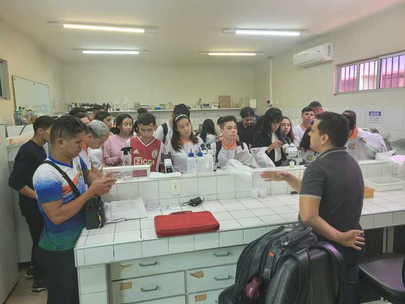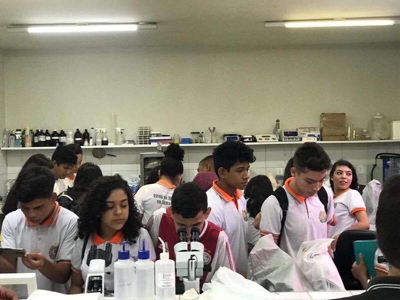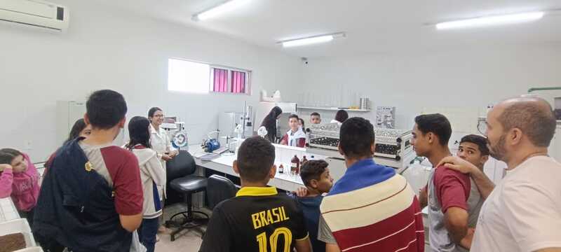 Visita da Escola Francisco Romão, de Tianguá, ao campus. 14 alunos do 9° ano, conheceram os cursos ofertados, e tiveram vivências nos laboratório de quimica, biologia e física.
