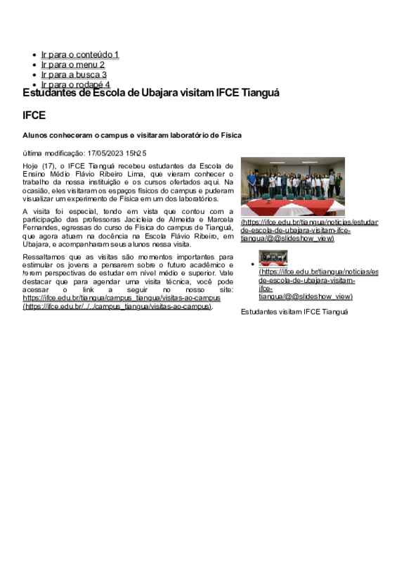 - Arquivo Estudantes de Escola de Ubajara visitam IFCE Tianguá — Instituto Federal de Educação, Ciência e Tecnologia do Ceará IFCE.pdf Estudantes de Escola de Ubajara visitam IFCE Tianguá — Instituto Federal de Educação, Ciência e Tecnologia do Ceará IFCE.pdf adicionado