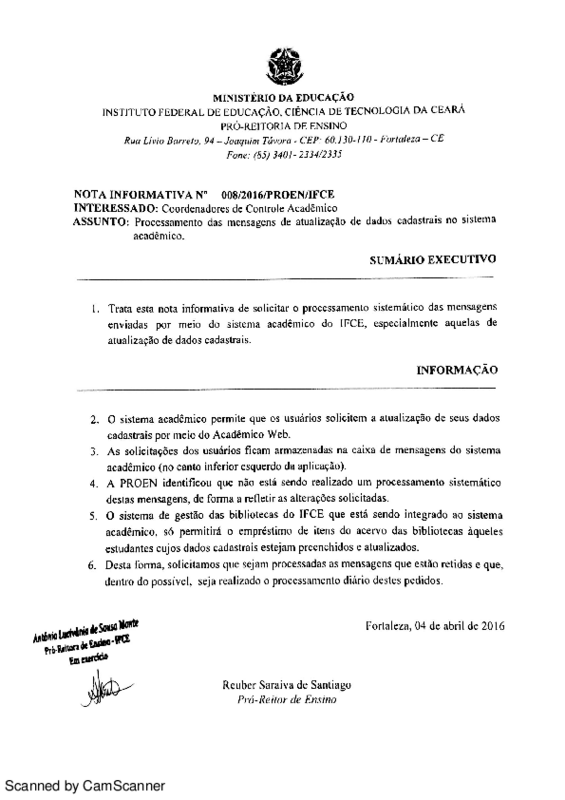 AbertaNota Informativa N° 008/2016/PROEN/IFCE
