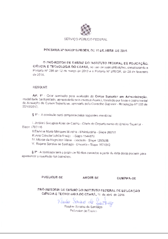 AbertaPORTARIA No 004/2016/PROEN, DE 11 DE ABRIL DE 2016
