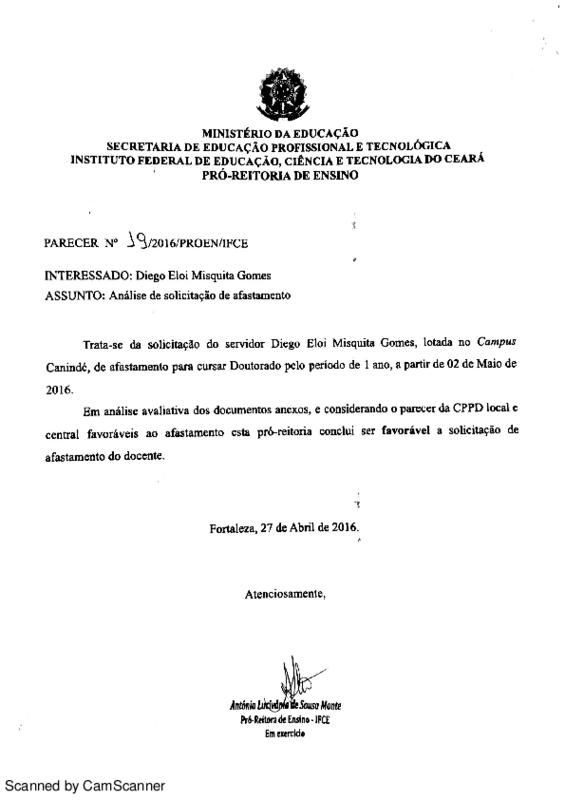 AbertaParecer No 019/2016/PROEN/IFCE