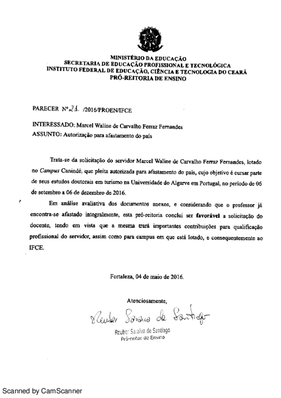 Autorização para afastamento do país - Marcel Waline de Carvalho Ferraz Fernandes - Campus Canindé