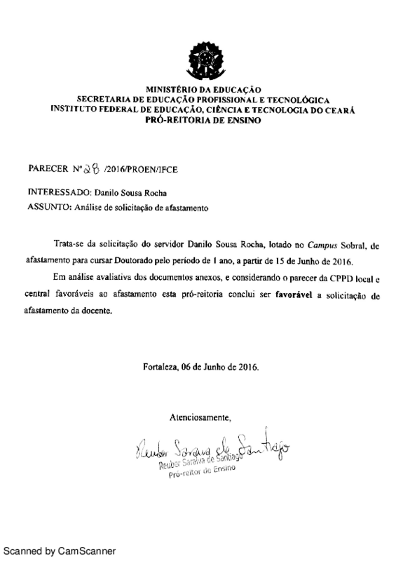 Solicitação de afastamento para cursar Doutorado do servidor Danilo Sousa Rocha - Campus Sobral.