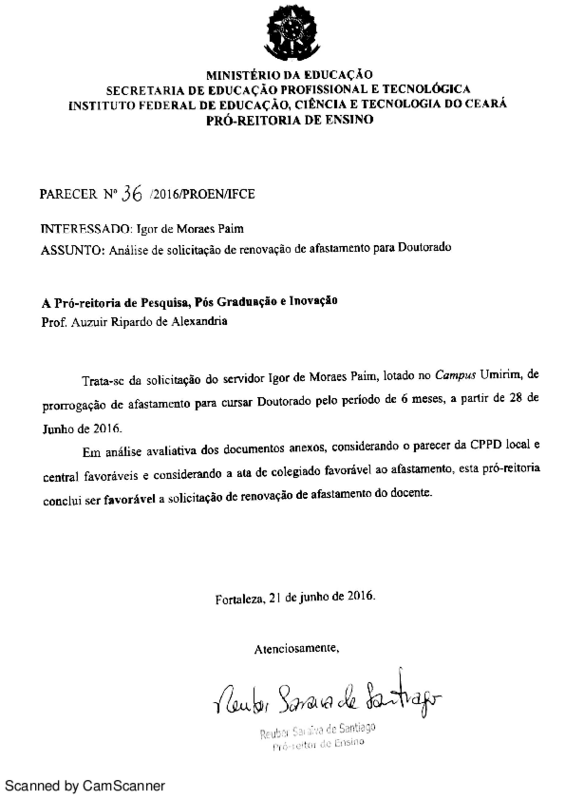 Solicitação de afastamento para Doutorado - Igor de Moraes Paim - Campus Umirim.