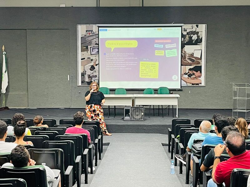 A ação teve como objetivo discutir acerca da violência contra a mulher, promovendo reflexão sobre a temática. Ocorreu em parceria com o Instituto Maria da Penha