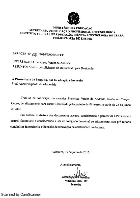 Análise de solicitação de afastamento para doutorado de Francisco Vanier de Andrade - Campus Cedro