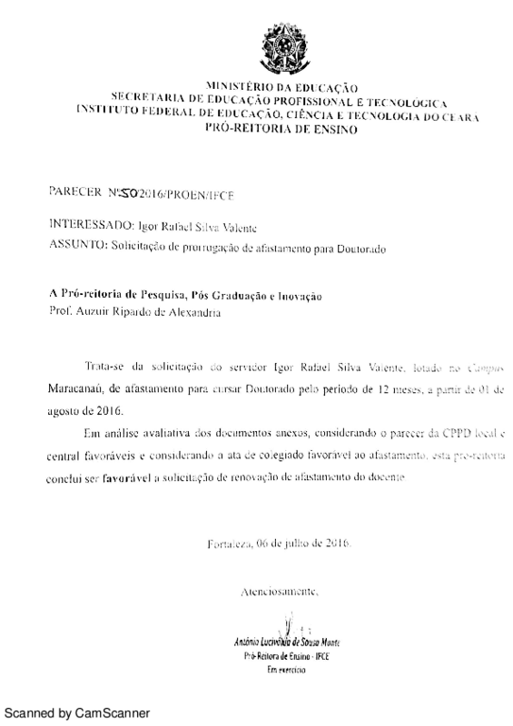 Solicitação de prorrogação de afastamento para Doutorado de Igor Rafael Silva Valente - Campus Maracanaú.