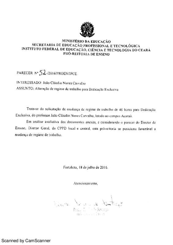 Alteração de regime de trabalho para dedicação exclusiva do prof. João Cláudio Nunes Carvalho - Campus Acaraú.