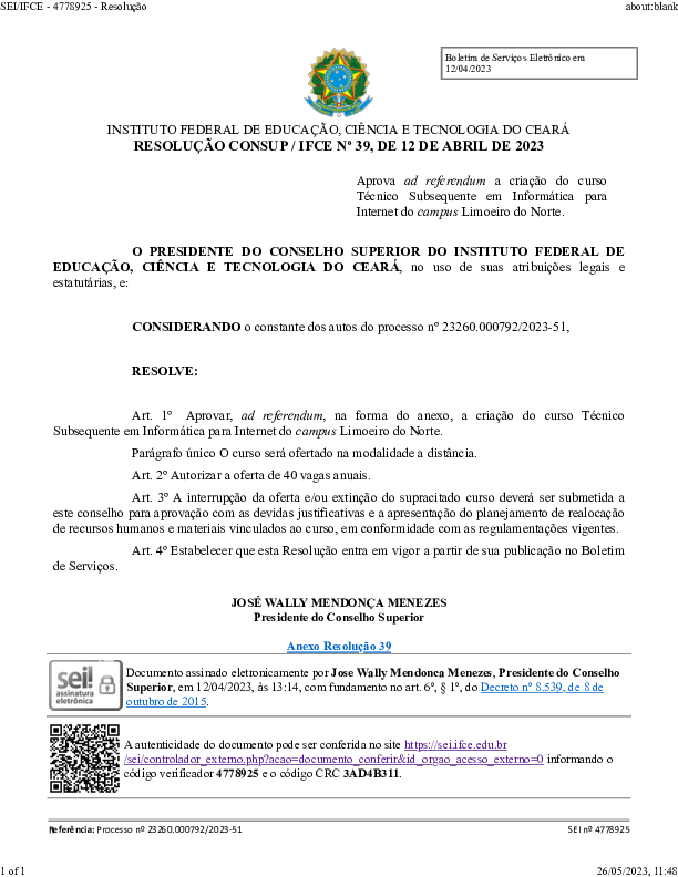 Além disso, o curso irá contribuir para o alcance do percentual de vagas destinadas ao Ensino Médio Técnico, conforme prescreve a lei 11892 de 29 de dezembro de 2008.