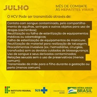 Sendo assim o Julho Amarelo foi pensado na forma de construção de cards para serem divulgados tanto nas redes sociais quanto no encontro pedagógico do Campus, visto que os alunos e servidores estão de férias em julho de 2023.