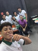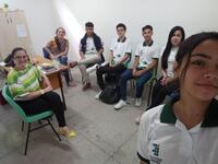 Conversa com os estudantes, apresentando pontos relacionados papel do representante de turma, bem como informando sobre o que é o Conselho de Classe e a importância da participação estudantil.