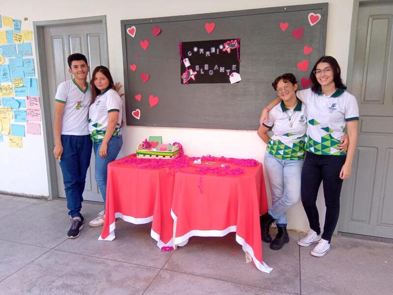 Esta atividade foi uma iniciativa de alguns estudantes dos cursos integrados que se propuseram a organizar um correio elegante. Durante o intervalo do almoço, foi montado um ambiente para que os estudantes pudessem escrever recadinhos, os quais foram entregues, posteriormente, pelos representantes de turma e protagonistas.