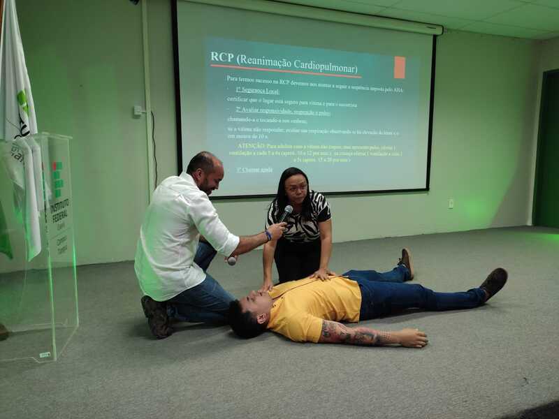 A ação aconteceu no Encontro Pedagógico que foi promovido pelo Departamento de Ensino. O intuído da ação foi contribuir com o evento no sentido de orientar os(a) servidores (a) corpo docente sobre como proceder em situações de saúde em sala, estreitando a relação professor- aluno, CTP e da CAE.