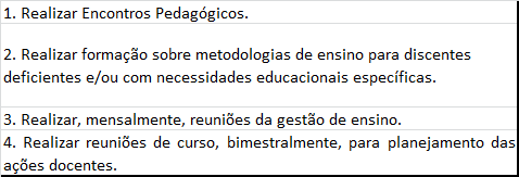 . Realizar reuniões de curso, bimestralmente, para planejamento das ações docentes.