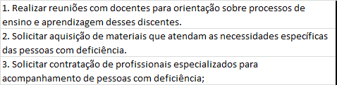 . Solicitar aquisição de materiais que atendam as necessidades específicas das pessoas com deficiência.