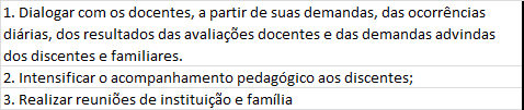 . Intensificar o acompanhamento pedagógico aos discentes;