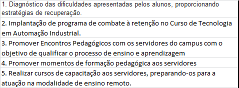 . Implantação de programa de combate à retenção no Curso de Tecnologia em Automação Industrial.