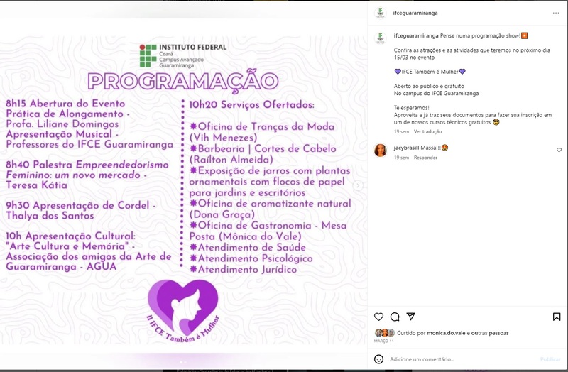 Manutenção de debates/palestras/lives/cursos periódicos em torno de questões de autoestima, valorização pessoal e profissional, assim como autocuidado no âmbito do campus.
