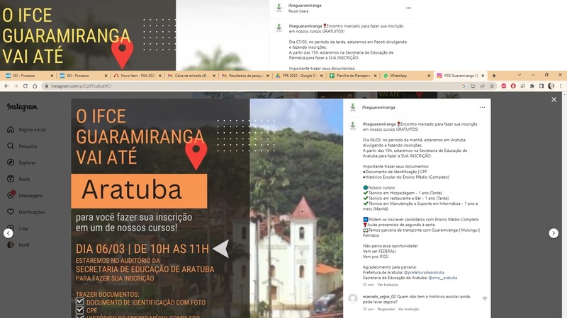 - Título alterado de Ações de Divulgação do Curso Técnico em Restaurante e Bar para Ações de Divulgação dos Cursos Técnicos