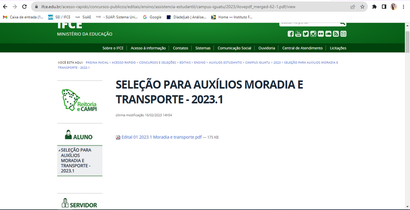 Seleção de estudantes para auxílios estudantis 2023.1 (moradia e transporte)