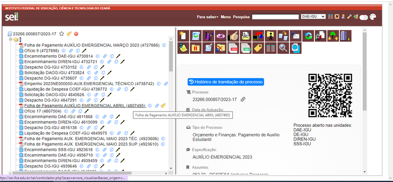 Oferta e seleção de estudantes para auxílio emergencial.