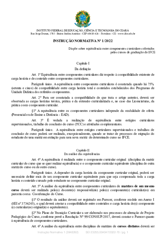 AbertaINSTRUÇÃO NORMATIVA Nº 1/2022 (equivalência-graduação)