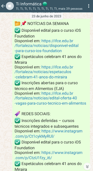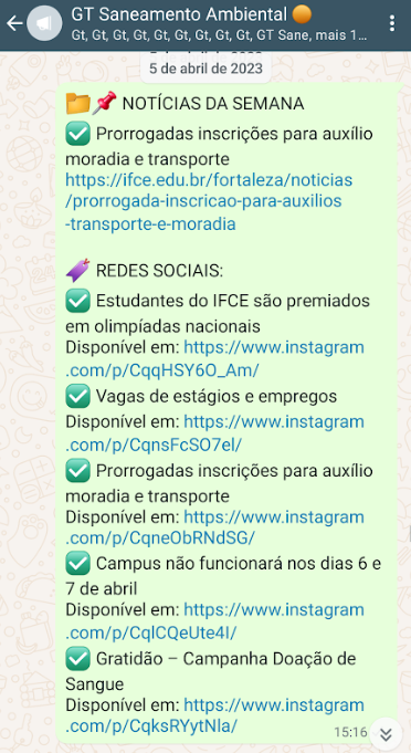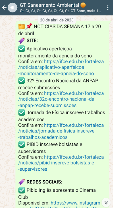 Enviar boletim semanal de informações aos alunos pelas listas de transmissão.