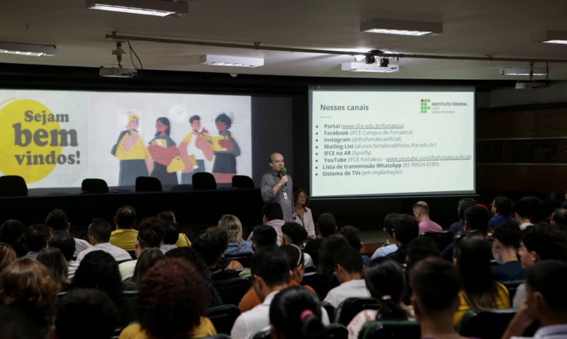 Ação: Participação da Comunicação Social na recepção dos alunos novatos com apresentação dos canais de comunicação disponíveis.