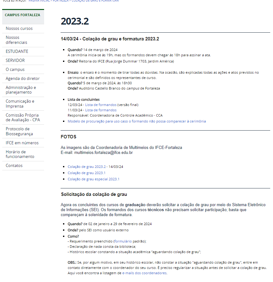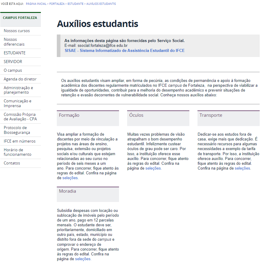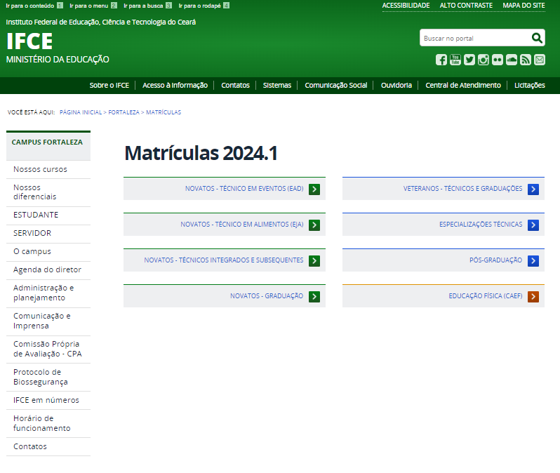 Objetivo: Tornar acessível os informes referentes ao aluno como: qseleção, matrículas, colação de grau etc.