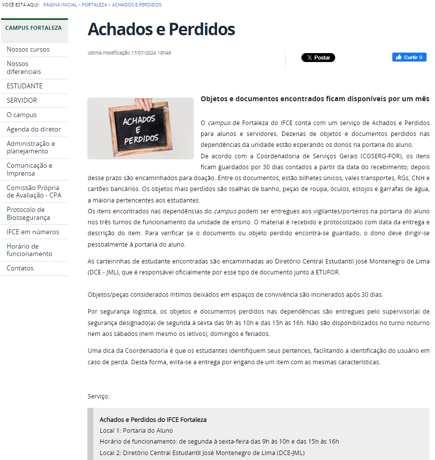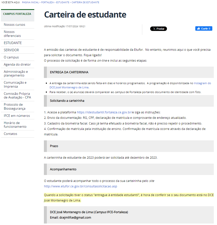 Ação: Atualização do “portal do aluno” que contém todas as informações relativas ao discente. Matrícula, processo de colação de grau, auxílios, entre outros.