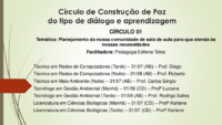 • Facilitação de Círculos de Construção de Paz em todas as turmas ingressantes dos cursos ofertados no campus Paracuru.