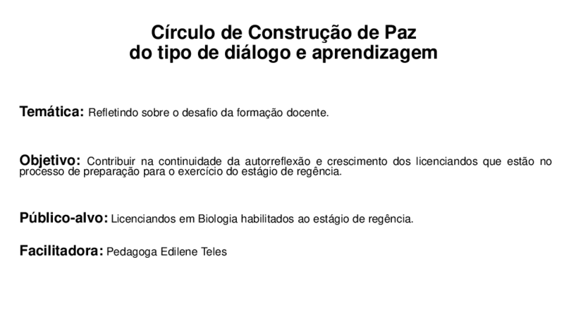 - Facilitação de Círculos pelos proponentes desse projeto a partir de solicitações realizadas, tanto por estudantes, quanto por docentes.