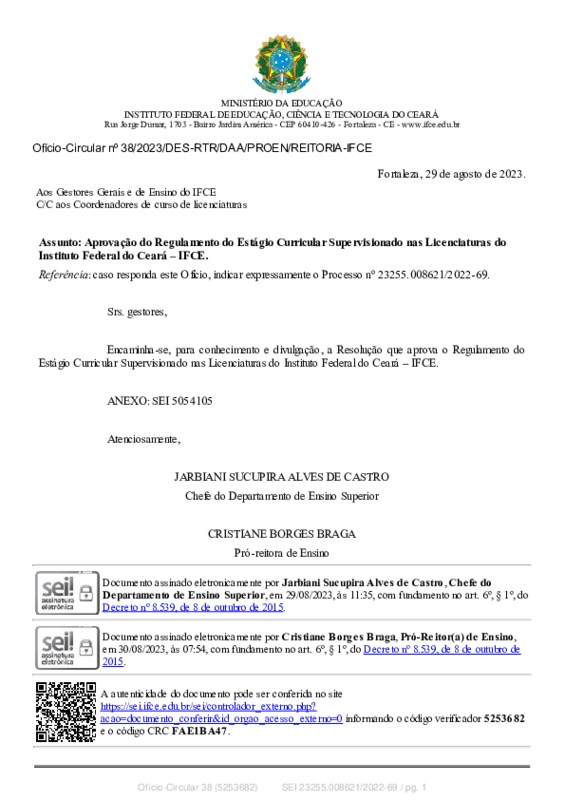 AbertaOfício-Circular nº 38/2023/DES-RTR/DAA/PROEN/REITORIA-IFCE