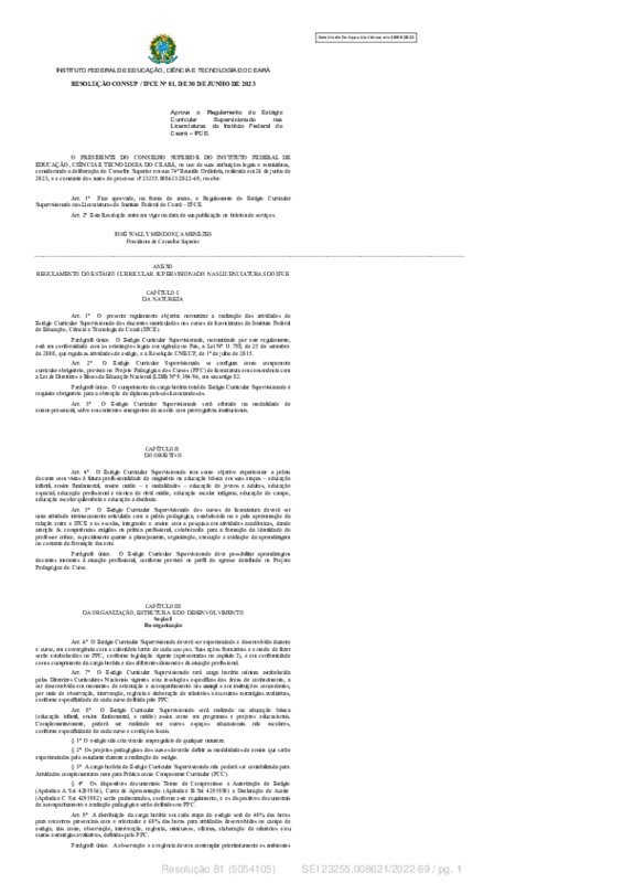 - Título alterado de Regulamento do Estágio Curricular Supervisionado nas Licenciaturas do Instituto Federal do Ceará – IFCE para RESOLUÇÃO CONSUP / IFCE Nº 81, DE 30 DE JUNHO DE 2023