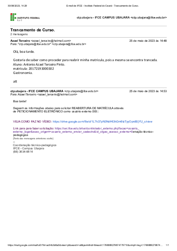 - Título alterado de Atendimento aos discentes nas solicitações de trancamento para Atendimento aos discentes nas solicitações de reabertura de matrícula