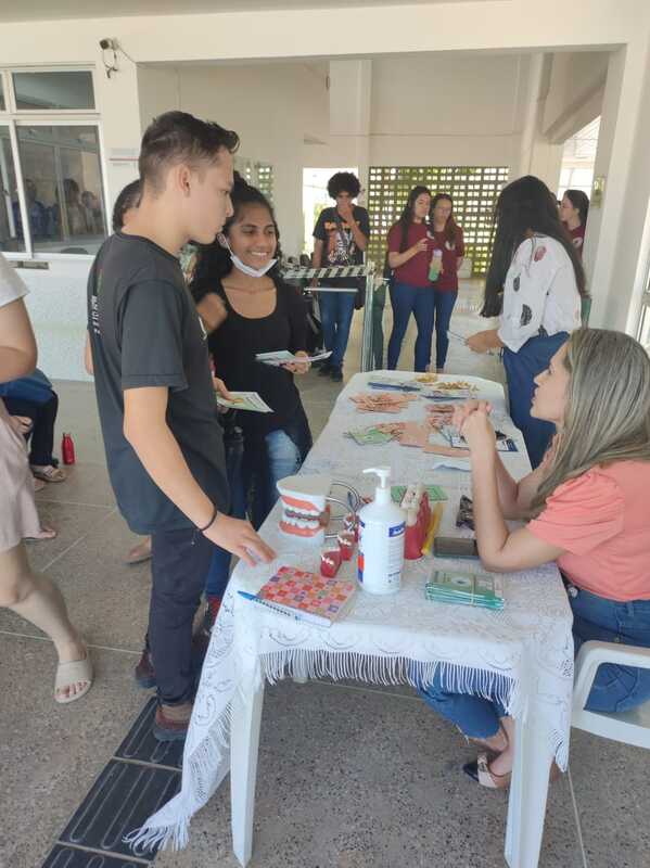 O trabalho foi feito com a abordagem a alunos na entra do campus, pela CAE, sob a orientação da Dentista.
