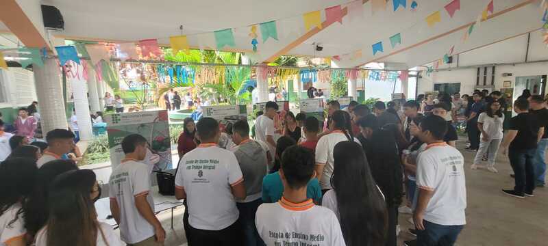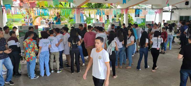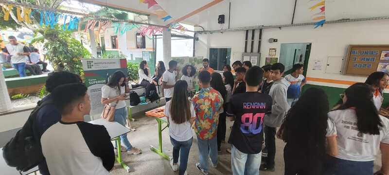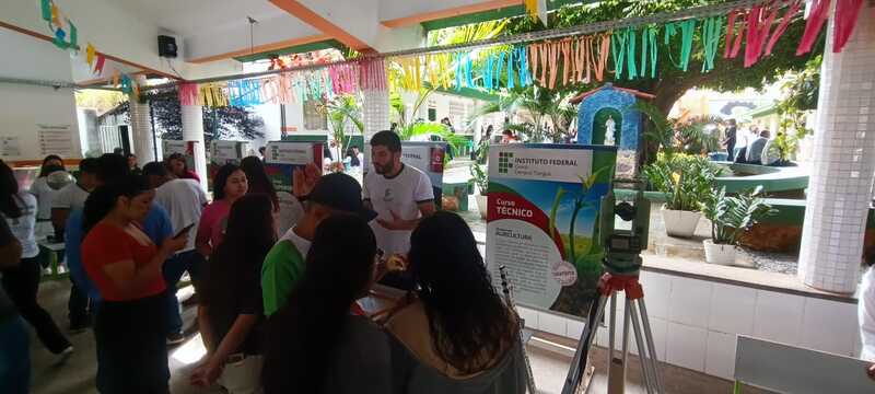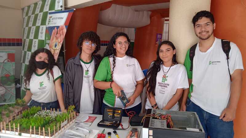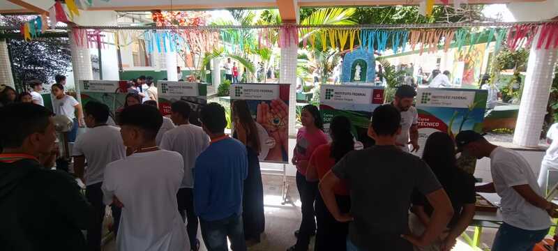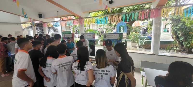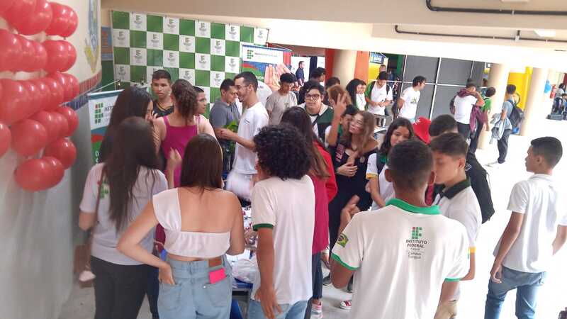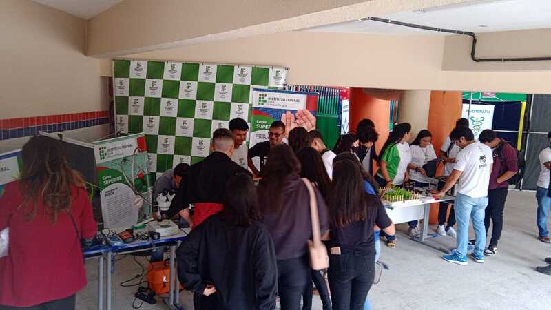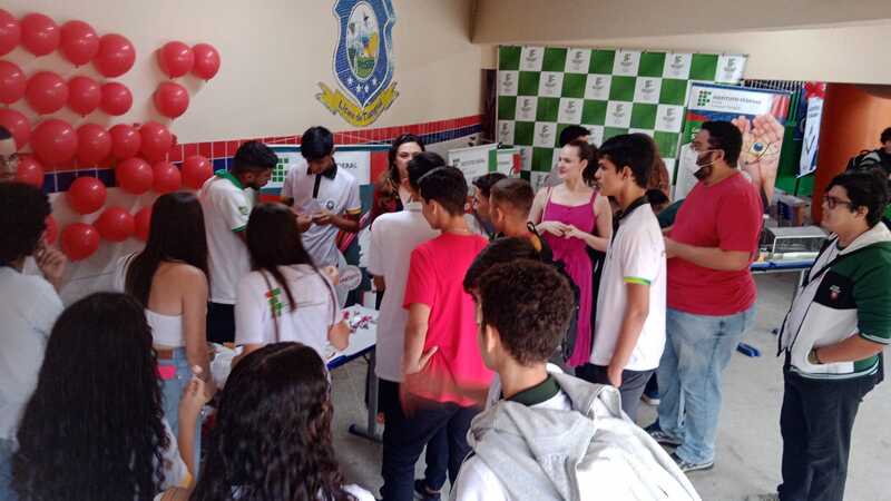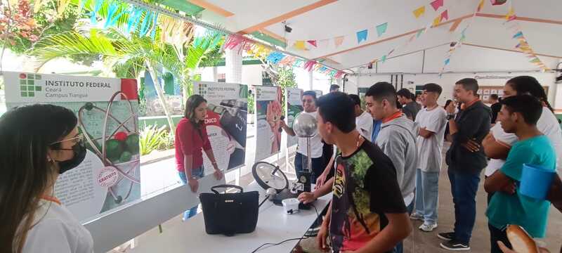 Participação das coordenações de curso e estudantes na Feira das Profissões na Feira das Profissões na Escola de Ensino Médio em tempo integral Irmã Lins, no dia 29/06/2023, em Viçosa do Ceará-CE, com a finalidade de divlgar os cursos ofertados no campus Tianguá, na qual os estudantes realizaram experimentos na área do curso.