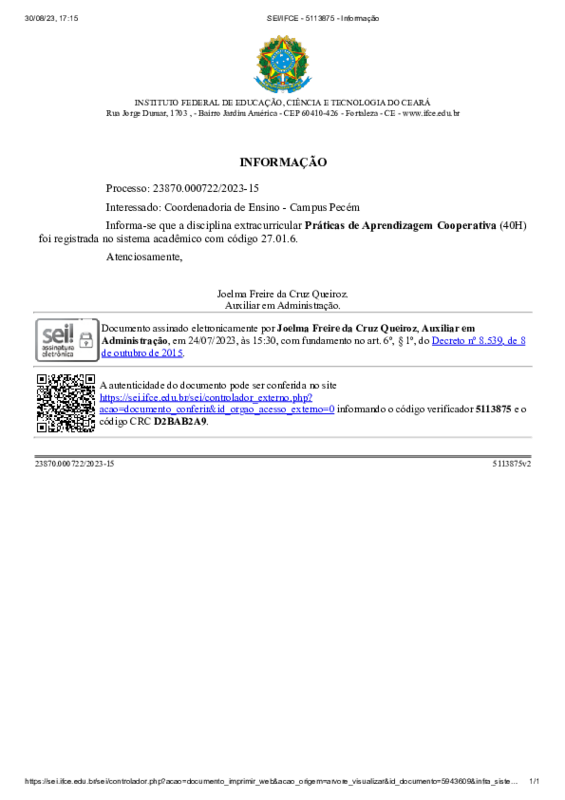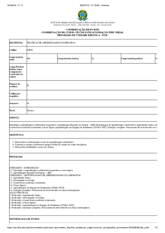 AbertaRealizar a oferta da disciplina extracurricular de aprendizagem cooperativa como estratégia pedagógica que favoreça o sucesso da aprendizagem discente