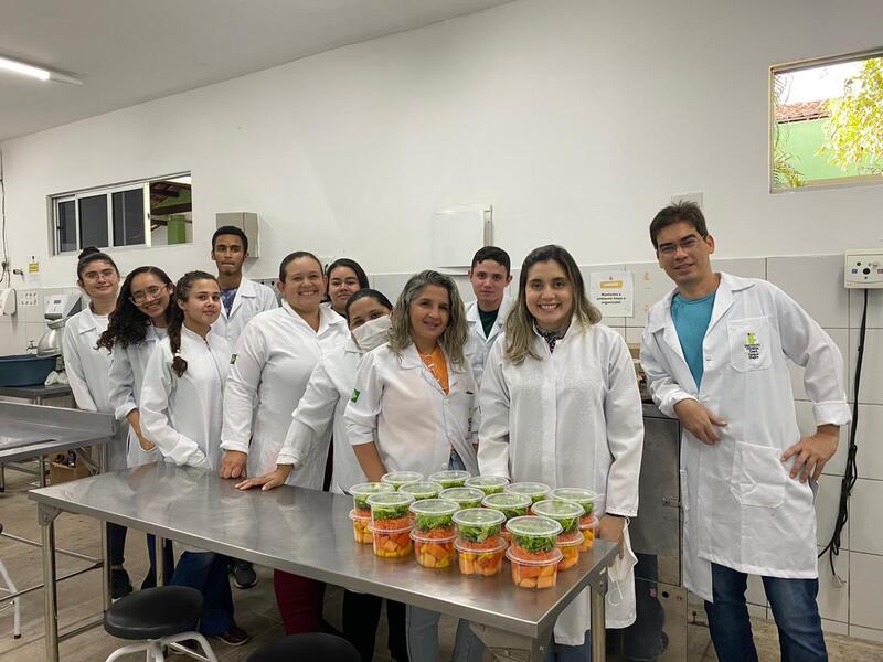 Aula de prática da disciplina de Agroindústria e produtos de origem vegetal do curso de Tecnologia em Agroindústria.