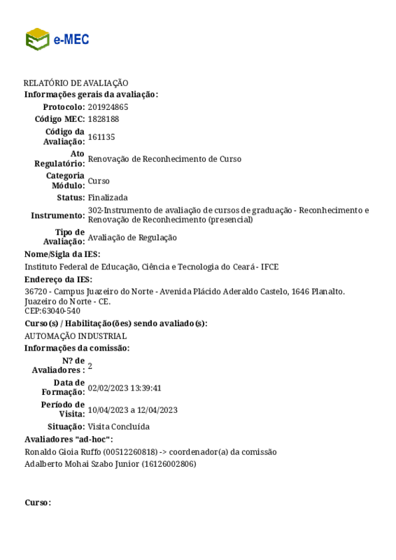 Renovação reconhecimento de curso Automação Industrial