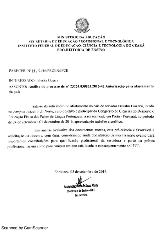 Processo 23261.038833.2016-43 - solicitação de afastamento do paísda servidora Ialuska Guerra - Campus Juazeiro do Norte.